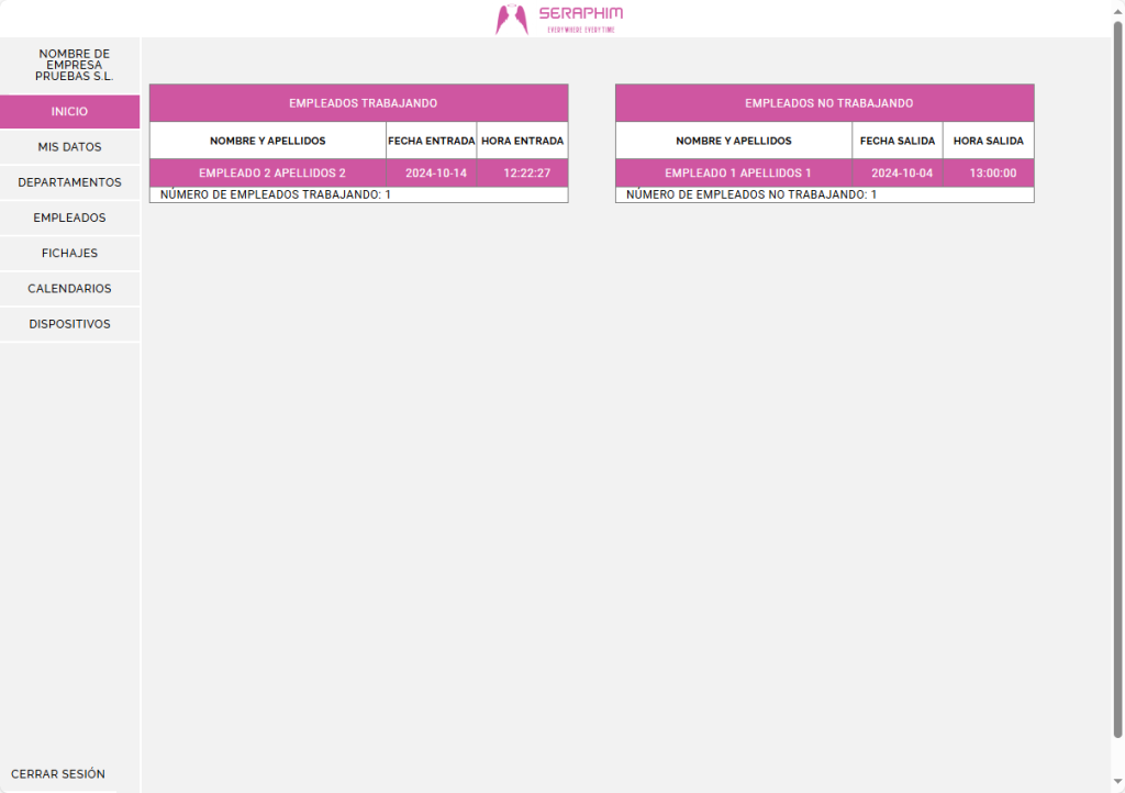 | Funciones | Plataforma web SERAPHIM 10 empleados | Plataforma web SERAPHIM 50 empleados | Plataforma web SERAPHIM 100 empleados | Plataforma web SERAPHIM 250 empleados | Plataforma web SERAPHIM 1000 empleados | Plataforma web SERAPHIM 5000 empleados | Plataforma web SERAPHIM unlimited |