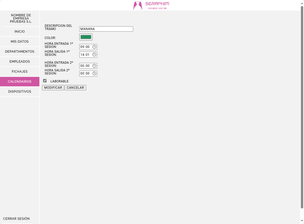 - Gestión de calendarios laborales anuales y de los tramos horarios.