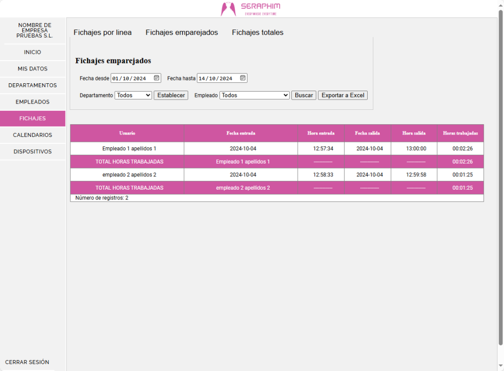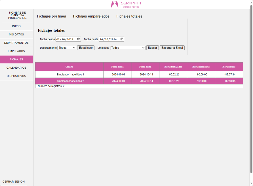- Registro de fichajes exportables a Excel.