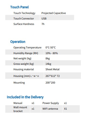 Kiosko de montaje en pared 15,6″ Android